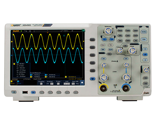 OWON XDS4502 многофункциональный, 2-х канальный, цифровой запоминающий осциллограф бюджетного ценового класса с полосой пропускания до 500 Мгц.