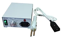 Электронож ЭН-01М состоит из блока питания и самого электроножа с гибким проводом длиной 1,2м. Блок питания предназначен для подачи регулируемого переменного напряжения на нить накала, закреплённую в держателях электроножа.