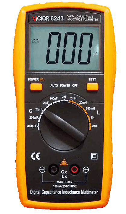VICTOR 6243 представляет собой надежный цифровой измеритель LC (индуктивности и ёмкости). Для улучшения чтения показания в приборе применен жидкокристаллический ЖК-дисплей 3½ разряда, с высотой знаков 26 мм. Прибор имеет две функции измерения: индуктивности и емкости. Основу этого измерительного прибора составляет БИС с аналого-цифровым преобразователем с двойным интегрированием. Это – идеальный измерительный прибор для производства, лабораторного и бытового применения.