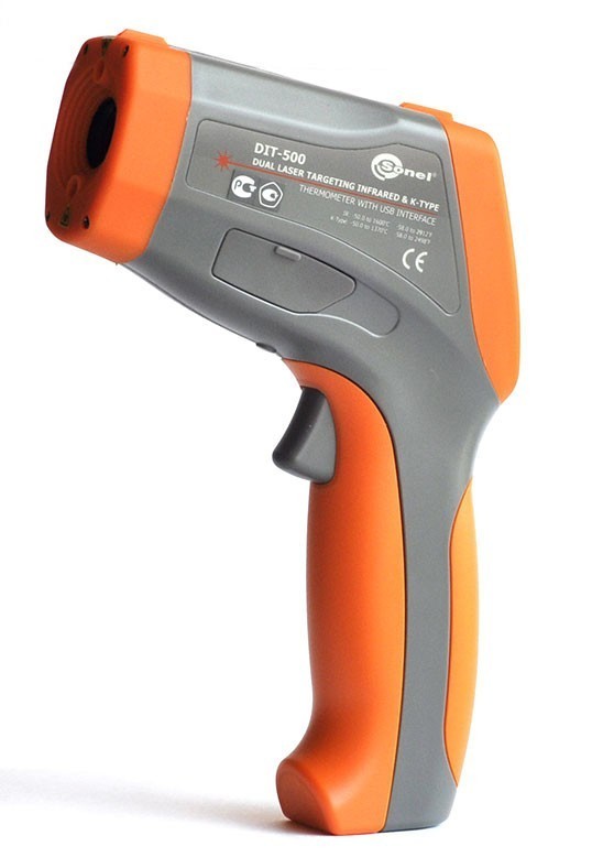 Инфракрасный измеритель температуры (пирометр). Современный прибор, позволяющий бесконтактным методом измерить температуру поверхности любых объектов: электронные компоненты, пластик, металл, дорожные покрытия, пластик, дерево, легко воспламеняемые объекты.