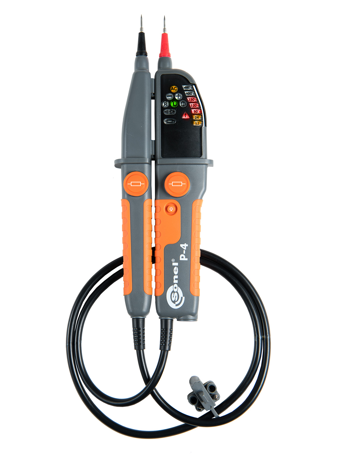Измеритель напряжения P-4 предназначен для тестирования наличия напряжения постоянного/переменного тока благодаря светодиодной индикации, проверки целостности цепи, срабатывания УЗО, проверки диодов и определения направления чередования биполярной фазы. Усиленный двухкомпонентный корпус и степень защиты IP65 защищает измеритель от воздействия внешних факторов.