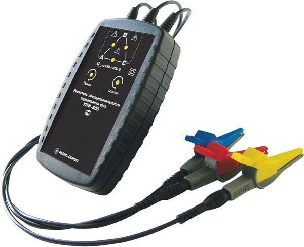 Индикация последовательности чередования фаз, соотношение межфазных напряжений (перекос фаз, отсутствие напряжения на фазе). Диапазон межфазных напряжений от 150 до 800 В. Диапазон рабочих частот от 40 до 60 Гц. Масса 0,2 кг.