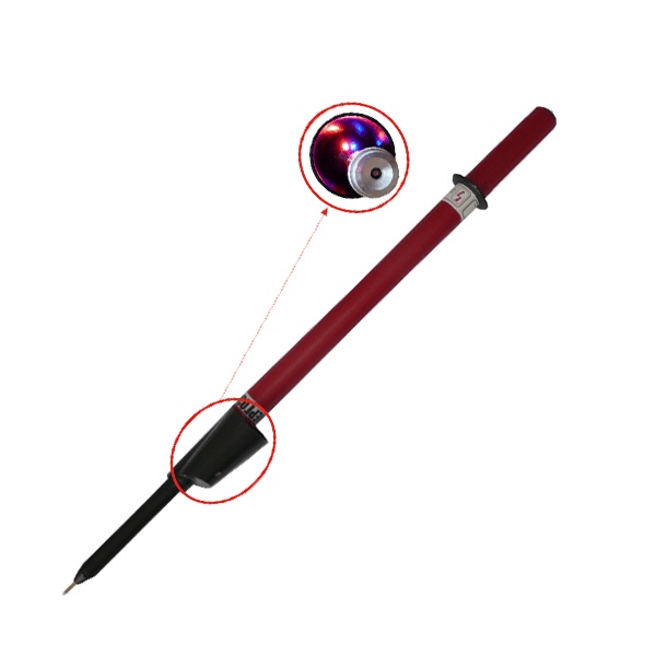Указатель УВНУ-10 СЗ ИП позволяет определить опасное напряжение на деревянной опоре без применения заземляющего провода, а в комплекте со сборной 4-х звенной изолирующей оперативной штангой ШО-10-4-6,6 длиной 6,6 м, с земли без подъема на опору ВЛ.
