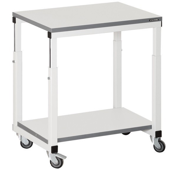 Предназначены для установки и перемещения оборудования в рабочей зоне. Снабжены 4-мя колесными опорами диаметром 75 мм, две из которых с механизмом фиксации. Регулировка высоты столешницы от 650 до 950 мм. Нагрузка на столешницу до 100 кг.
