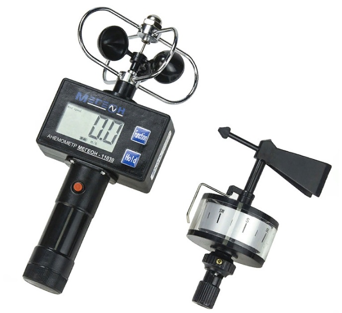 Мегеон 11030 представляет собой высокоточный анемометр с интегрированным метеорологическим флюгером. Данный прибор используется для проведения силы и скорости воздушного потока. Анемометр Мегеон 11030 поддерживает несколько режимов измерения: определение средней скорости воздушного потока, измерение порывов ветра, удержание полученных результатов. Низкое сопротивление вращения обеспечивает высокую точность и минимальную погрешность при измерениях. При необходимости флюгер анемометра можно повернуть на 360 градусов, определение параметров ветра осуществляется в 16 направлениях. Для определения сторон света в прибор встроен компас.